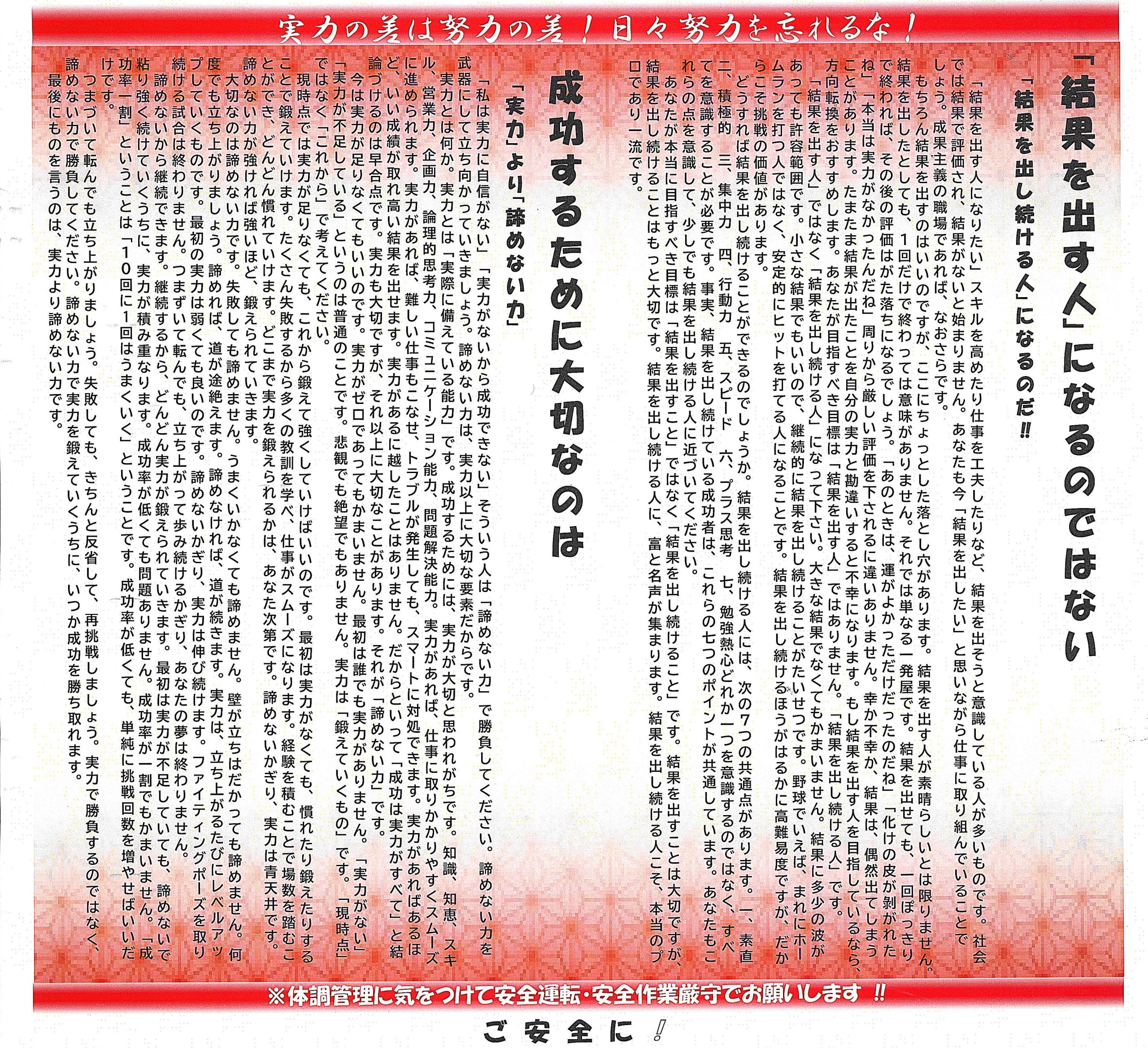 今年も社員一同、お客様の事を第一に考えて仕事に取り組む所存でございます。